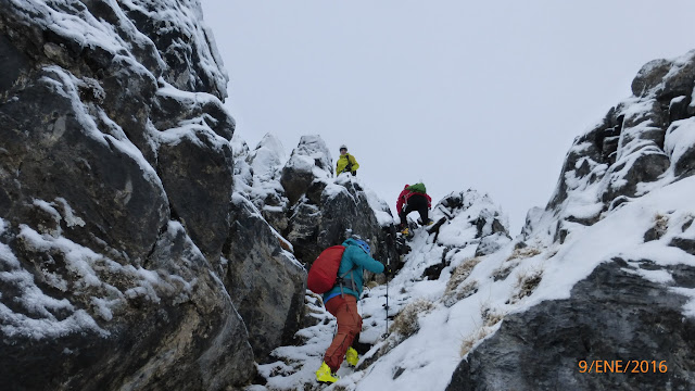 Como hemos salido de la estación......cartel de prohibido esquí de montaña ?...mucha gente entrenando y otra ascendiendo. Nosotros también. con cuidadin por el orillo.